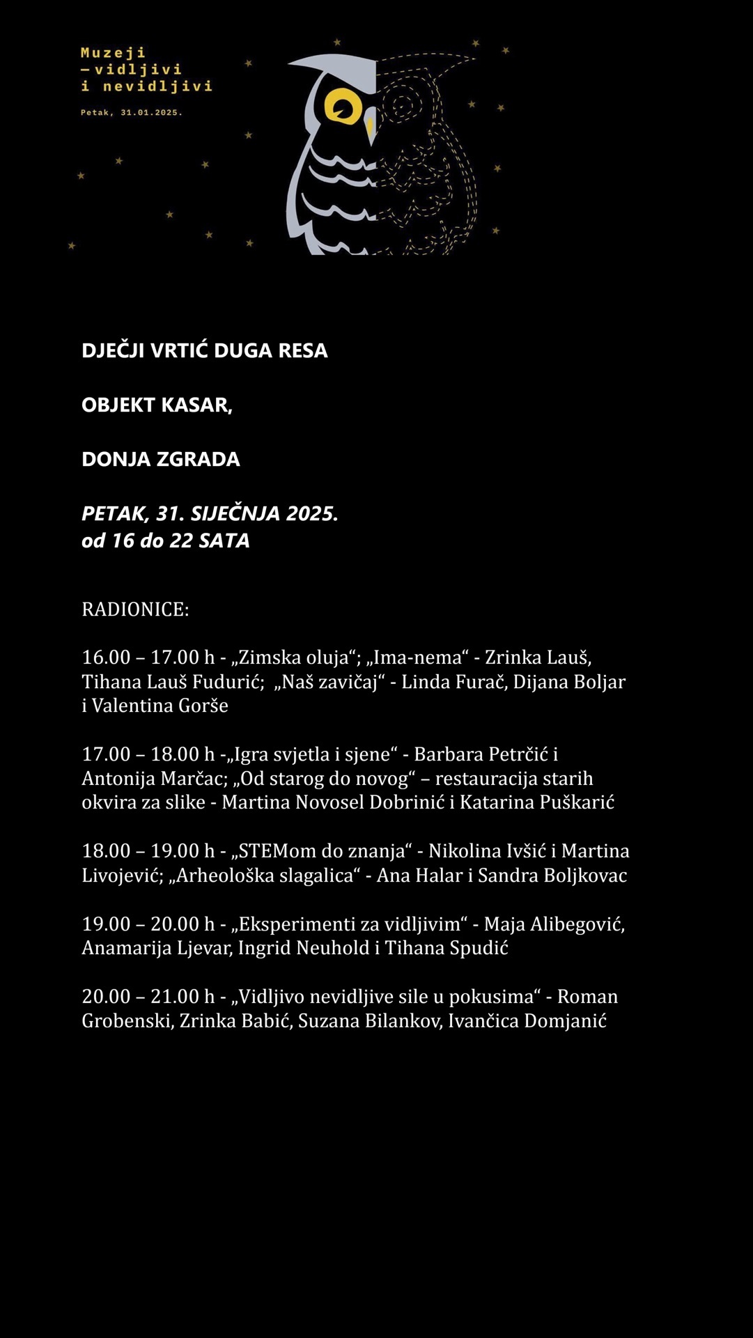 BUDITE DIO ČAROBNE NOĆI MUZEJA – PRIDRUŽITE SE RADIONICAMA U ORGANIZACIJI DJEČJEG VRTIĆA DUGA RESA!