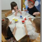 - zajedničke igre na otvorenom – crtanje pisanice i zečića kredom, prenošenje jaja u žlici