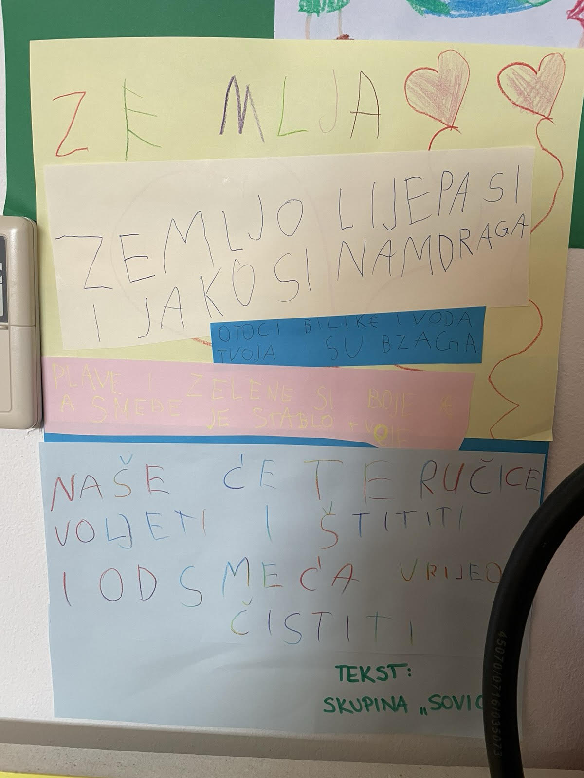 Tako su neke odgojno-obrazovne skupine uređivale svoje eko vrtove, sadile i sijale različito voće i povrće, pisale su se rime u čast našoj planeti, čitale su se razne tematske slikovnice i priče, a uz navedeno provedene su i različite istraživačke, likovne i stvaralačke aktivnosti kako bi se obilježio Dan planeta Zemlje.