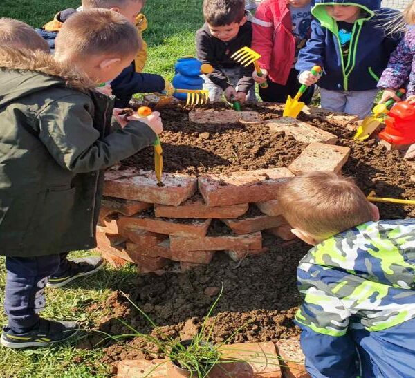 onda svojim ručicama posadila u gredicu. Djeca su veselo i marljivo rahlila zemlju malenim