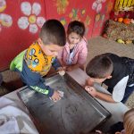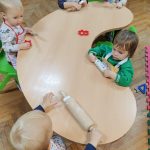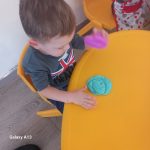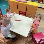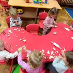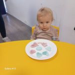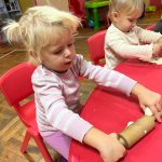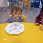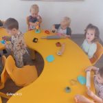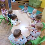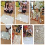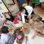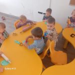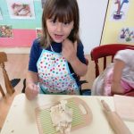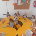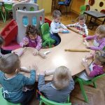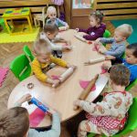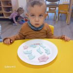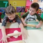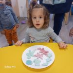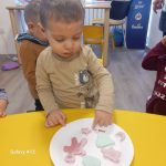 Leptirići – likovna aktivnost bojanja pastelom, valjanje slanog tijesta i utiskivanje kalupa, taktilno istraživanje žitarica, slobodno modeliranje slanim tijestom