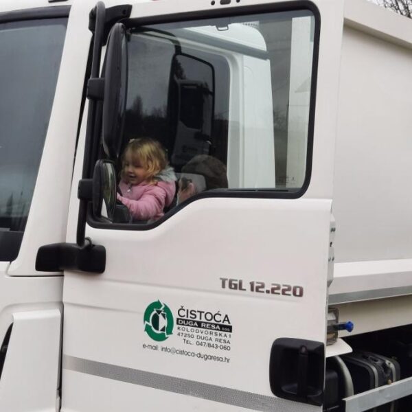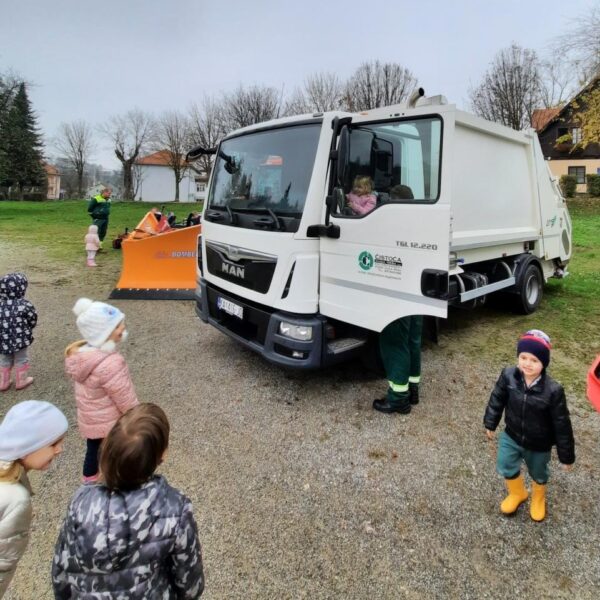 Djeca iz odgojno-obrazovne skupine Gljivice tijekom svoje šetnje gradom zaustavili su se pred novim voznim parkom gradske Čistode. Naišli su na tiskovnu konferenciju na kojoj su predstavljeni novi kamioni, kosilice i traktor. Naše Gljivice su bile oduševljene te su morale sjesti na svako vozilo novog voznog parka, a najviše su ih oduševili kamioni i njihova glasna truba koju su svi htjeli isprobati. Zaposlenici Čistode su bili jako susretljivi te su strpljivo udovoljavali zahtjevima naših mališana.