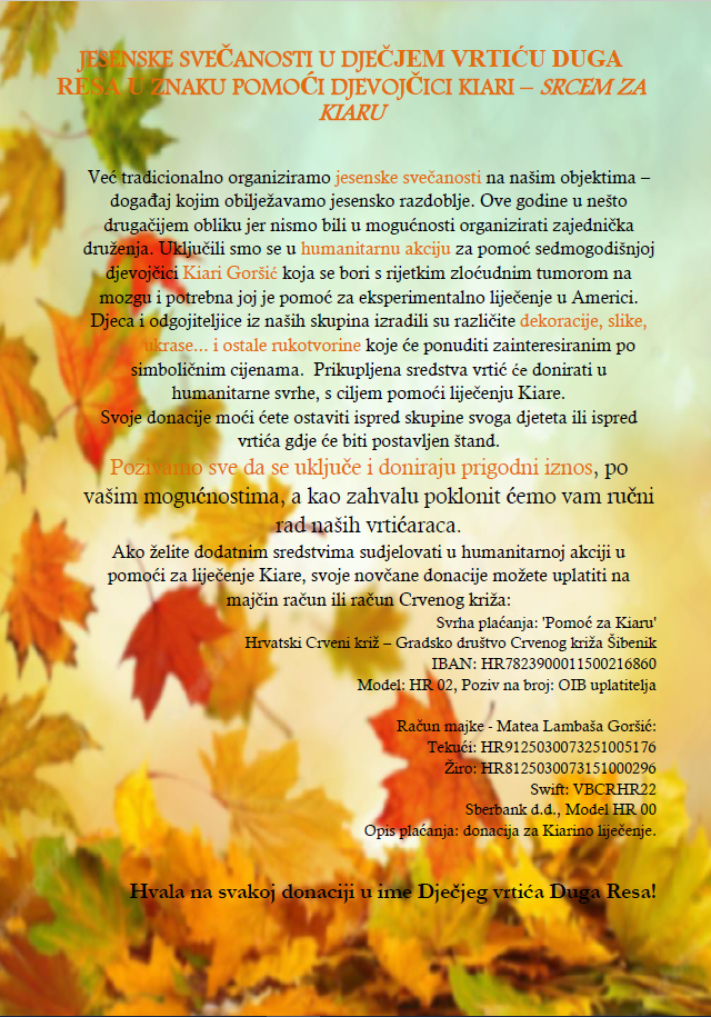 JESENSKE SVEČANOSTI U ZNAKU POMOĆI DJEVOJČICI KIARI