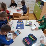 Osim što su posijale pšenicu, naše su Sovice izrađivale i božićne lampice tehnikom pečatnog tiska s krumpirom i temperama! Potom su njima ukrasile sobu dnevnog boravka.