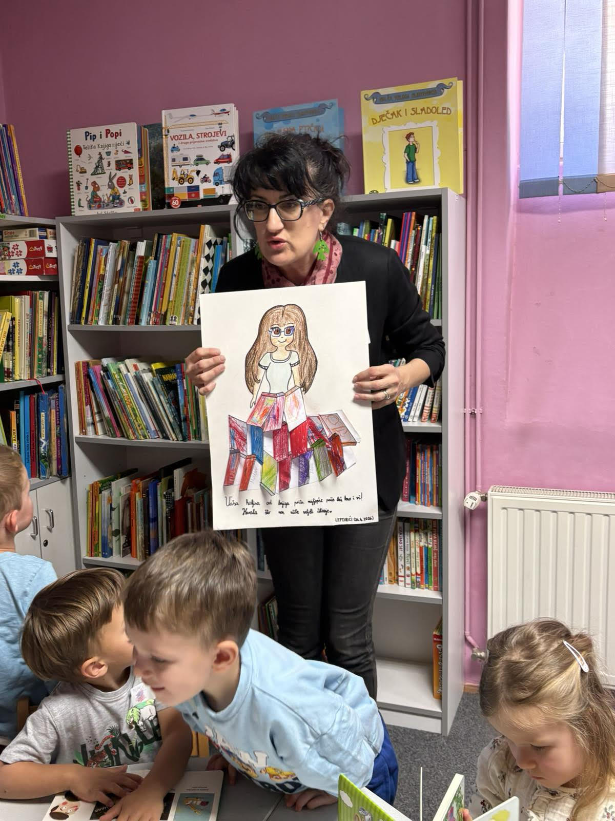 Tijekom posjeta djeca su slušala priču Glistica Mila, kroz koju su na zanimljiv i njima primjeren način učila o važnosti glista u prirodi. Nakon čitanja uslijedio je kreativni dio aktivnosti, tijekom kojeg su Leptirići izrađivali vlastite naljepnice.