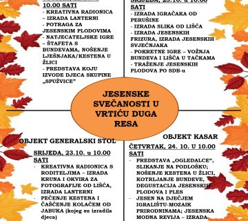 25/10/2024U tjednu od 21. do 25. listopada, naš vrtić s radošću je organizirao razne aktivnosti povodom Jesenskih svečanosti. Tijekom ovog ...