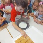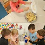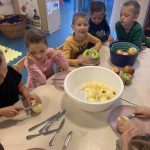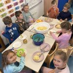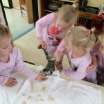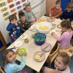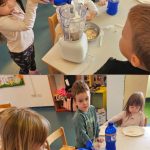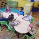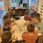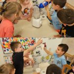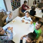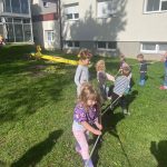 Zrakice - provlačenje (vezanje cipela), nizanje, užina u prirodi, tradicijske igre, izrada glazbenih instrumenata, izrada zajedničkog plakata – prava djeteta, izrada voćnog jogurta