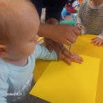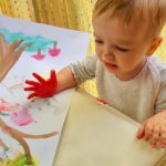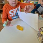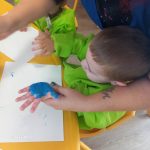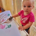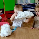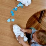 Slonići - ples i pjesma, plakat s otiscima ručica, oblaci od vate i kapi kiše