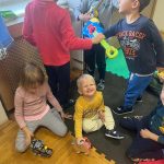 Tigrići - druženje na hodniku obje jasličke skupine, izrada gljiva, čitanje priča na terasi