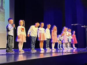 Dana 28. svibnja 2024. je u dugoreškoj kino-dvorani održana prekrasna priredba kojom su se naši predškolci oprostili od vrtića. Sudjelovala su djeca iz šest odgojnih skupina – „Gljivice“, „Cookies“, „Teddy Bears“, „Žabice“, „Zrakice“ i „Pandice“. Svaka se odgojna skupina predstavila s točkom koja se sastojala od recitacija i plesne točke. Odličnim odabirom glazbe i zanimljivim koreografijama rasplesali su mnogobrojnu publiku koja ih je bodrila svojim pljeskom. Na kraju su im dodijeljene diplome za uspješan završetak predškolskog programa. Kao veliki „finale“ sva su djeca zajednički otpjevala „Vrtiću, doviđenja!“ i mega-popularnu „Rim-Tim- Tagi-Dim“.