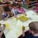 Istoga dana, odgojno-obrazovnu skupinu Kockice posjetili su očevi ribiči kako bi djeci približili svijet ribolova i podijelili svoja iskustva. Kockicama su tada u posjet došla i djeca iz skupine Točkice.