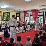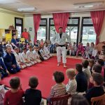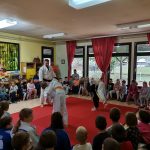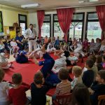 U ponedjeljak, 19. rujna 2022., tri vrtićke skupine s objekta Maslačak – „Leptirići“, „Cookies“ i „Žabice“ prisustvovale su zanimljivoj prezentaciji rada JUDO KLUBA DUGA RESA. Djeca su s velikim interesom pratila sve vježbe i poteze koje su prezentirali članovi Judo kluba. Ohrabrivali su ih pljeskom i izgovarali brojeve na japanskom jeziku zajedno s trenerom. Naučili smo da se na japanskom broji ovako: 1 – ichi; 2 – ni; 3 – san; 4 – yon, 5 – go... Posebno zanimljivo za djecu, kao i za prisutne zaposlenike vrtića, bilo je kad je trener pozvao našu novu zaposlenicu Anu Polović na prezentiranje judo vještine. Naime, naša Ana je 11 godina trenirala judo pa nam je pokazala nekoliko pokreta na što su svi okupljeni reagirali s oduševljenjem. Hvala Judo klubu na posjeti!