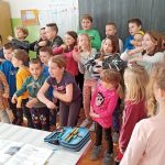 Nakon obilaska njihovih budućih učionica, predškolarci odlaze u 4.a i 4.b razred gdje učenici za njih organiziraju malenu priredbu – dvije su djevojčice recitirale, a cijeli razred otpjevao je i nekoliko pjesmica. Čak su i naši predškolarci njima otpjevali pjesmicu, na što smo im svi zapljeskali!