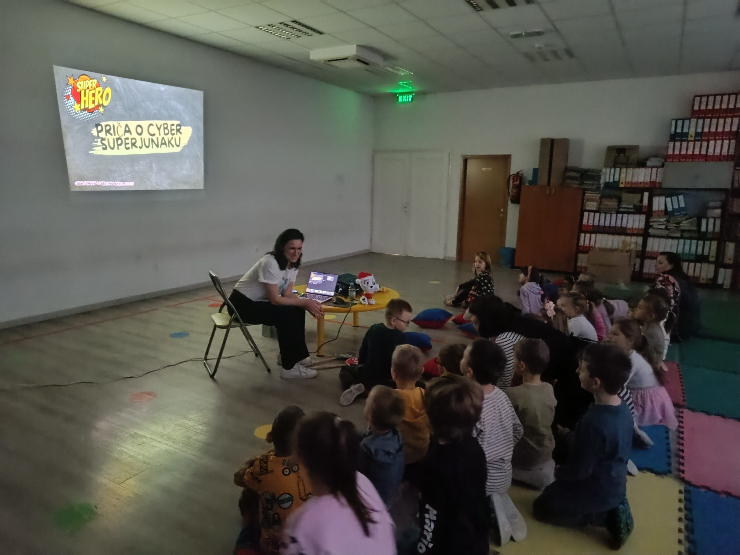 Predavanje je održala Andreja Stepić, vlasnica obrta „OSINT and Privacy Labs“. Voditeljica predavanja je upozorila djecu na neprimjerene sadržaje na Internetu, te što je sigurno, a što ne. Uputila je djecu kako nije sigurno komunicirati s nepoznatim osobama. Kroz predavanje ih je vodio superjunak – psić Marshall iz popularnog crtića „Psići u ophodnji“. Djeci je predavanje bilo vrlo zanimljivo i aktivno su sudjelovali u razgovoru te davali brojne primjere igrica i crtića koje gledaju kod kuće.